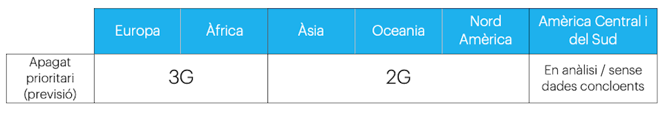 Com a resum, la següent taula sintetitza la previsió de priorització en l’apagat de xarxes 2G/3G per àmbit geogràfic: