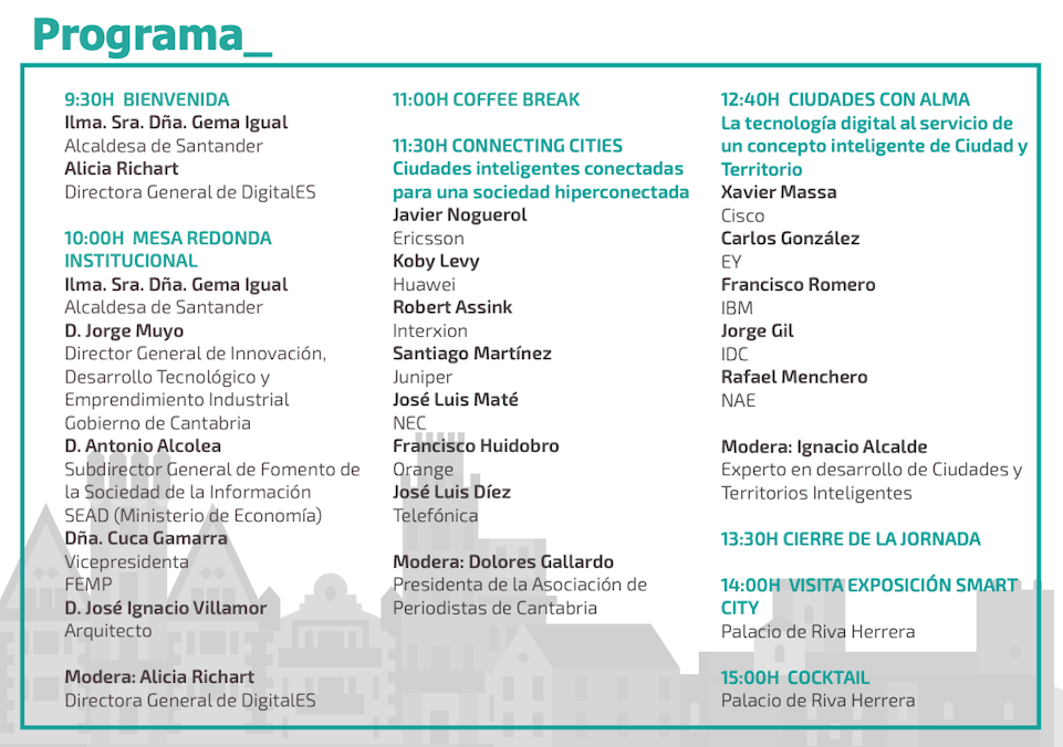 El dimarts 20 de novembre se celebra la ‘I Jornada Territoris Intel·ligents‘ de DigitalES a Santander, una trobada on es tractaran els reptes globals i locals de les ciutats del futur.