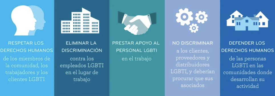 En concreto, los principios alientan a las empresas a examinar sus políticas y prácticas y establecer otras nuevas dirigidas a respetar y promover los derechos humanos de las personas LGBT+ a través de cinco normas divididas en cuatro contextos: